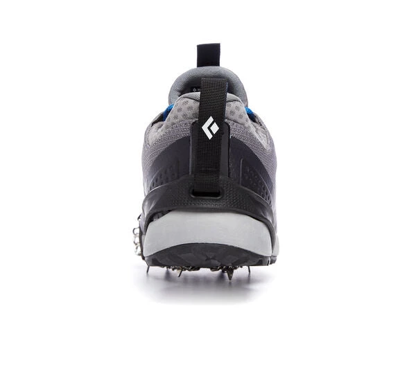 The Blitz Spike is our ultralight trail traction device at only 57 grams per device. Engineered for fast and light missions with ultimate packability, the Blitz Spike features 6 stainless steel spikes on the forefoot for superior strength and durability. Drawing from our extensive experience designing climbing crampons, the 6 forefoot spikes have an optimized 8mm length, designed to provide excellent engagement on snow and ice, with improved stability on rock when the trail ends and the scramble begins. The heel retention elastomer and webbing toe loop keeps the Blitz featherweight while providing a stable and secure fit.