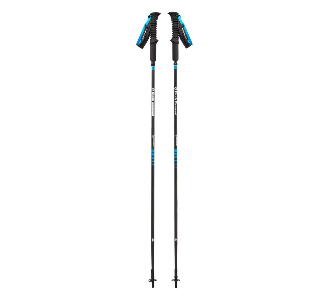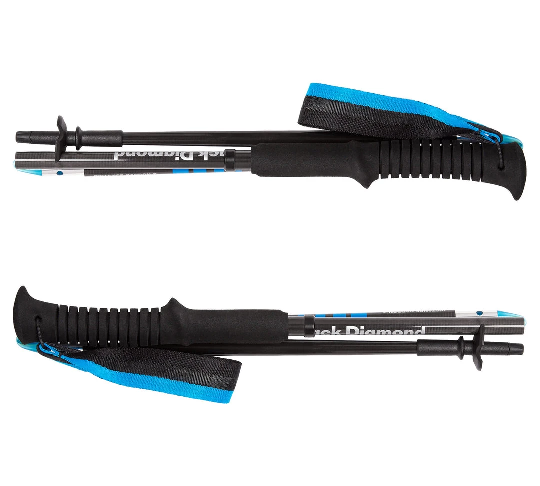 Black Diamond’s Distance Carbon Z is our lightest Z-Pole engineered for those who travel fast. With 100% carbon construction, the Distance Carbon Z weighs just 9 ounces and features a three-section foldable design that allows for fast-response deployment. We’ve improved the Distance Carbon Z’s joint support making them 30% stiffer, and they’re now more durable with reinforcements around the locking mechanism and upper shaft. Non-scarring rubber Tech Tips and a lightweight, EVA foam grip round out this pole as a lightweight detail-driven pillar in pole tech.