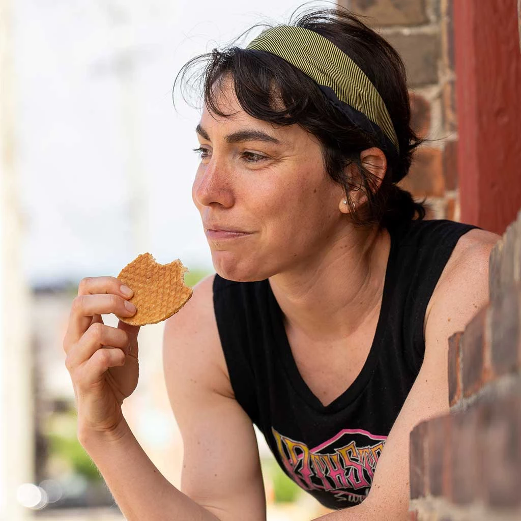 Perfect for long runs, rides, hikes, whenever you’re on the go, or just in need of a snack! Our gluten free maple ginger stroopwafels pack an ultra-tasty 140 calorie punch to keep you moving.