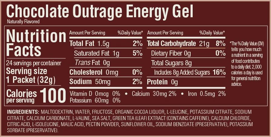 Chocolate Outrage was one of the four original Energy Gel flavors back in 1993, and it remains a favorite to this day. Crafted with organic dark chocolate, this flavor satisfies any cocoa craving. The chocolate taste is rich, sweet, and fudge-like…full of flavor but simple enough that you can enjoy it day after day.