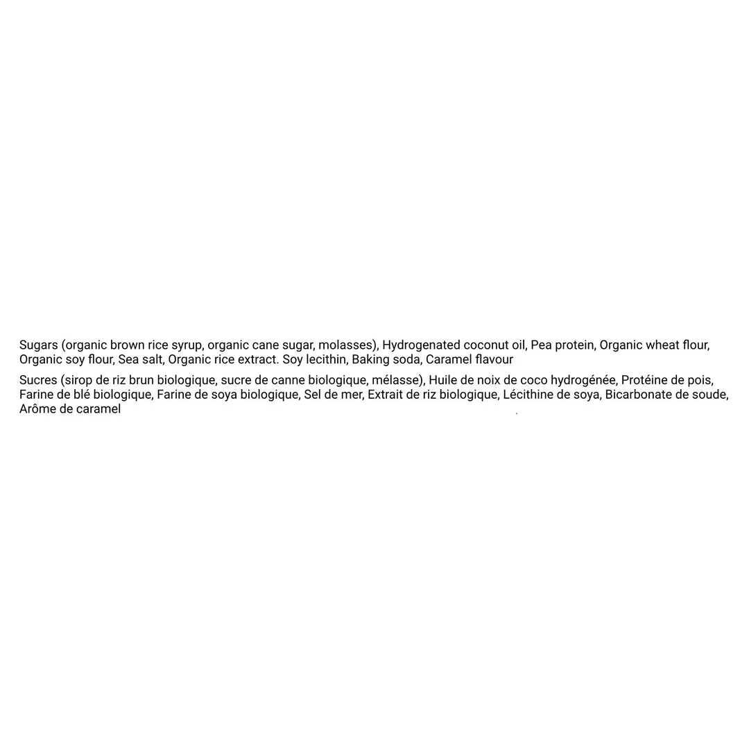 Sugars (organic brown rice syrup, organic cane sugar), Hydrogenated coconut oil, Pea protein, Organic wheat flour, Organic soy flour, Sea salt, Organic rice extract, Soy lecithin, Organic vanilla extract, Baking soda