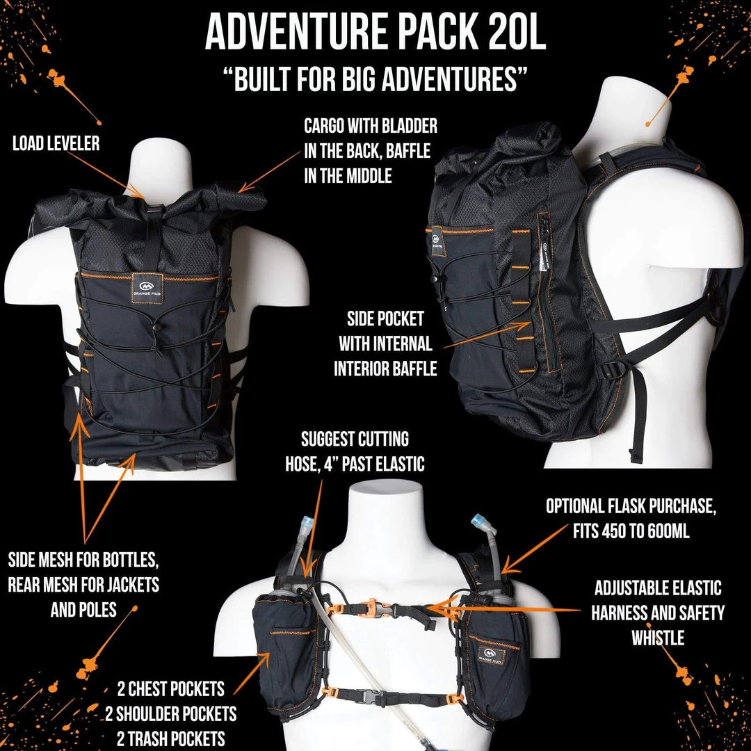 - Note: The Adventure Pack 20L does not come with soft flasks. Soft flasks are available here.