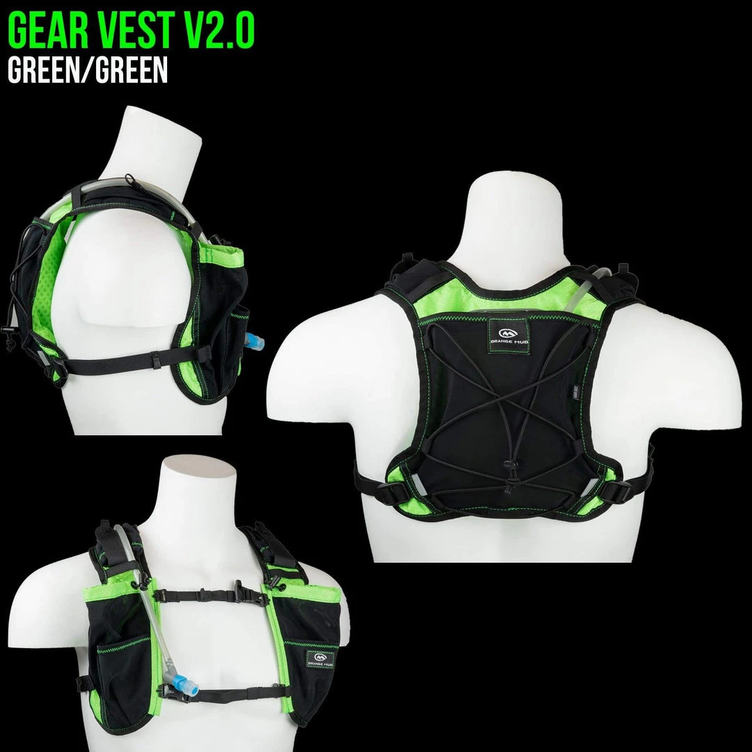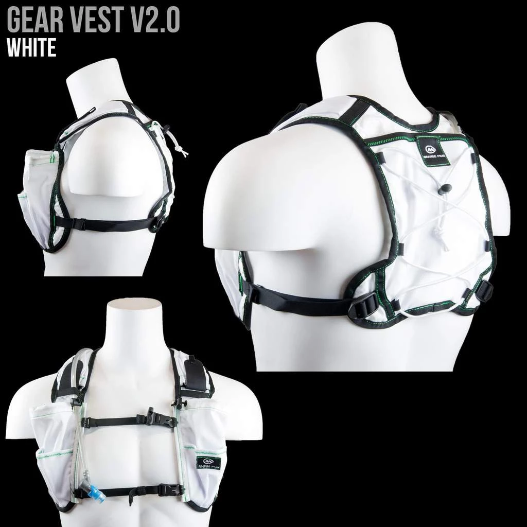 During any sport the Gear Vest is extremely stable to torsional, up and down, and fast movements. It tracks with your body and is very comfortable to wear. Storage up front is designed around 500ml or 600ml soft flasks.