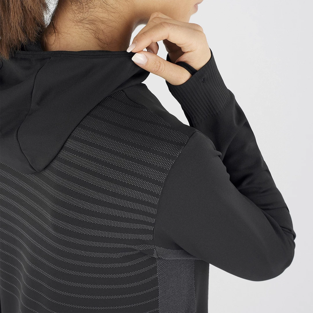 With a seamless body, active fit and soft fabrics, the ESSENTIAL SEAMLESS for women minimizes friction and maximizes comfort. Featuring engineered mesh zones, this hoodie is breathable with wicking fabric that keeps your body temperature under control. Ideal for running, it also adapts to any outdoor activity.